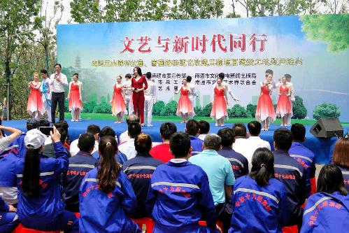 5月28日,中共南通市委宣传部、南通市文广新局、南通市总工会、南通市文联又携手走进五山森林公园、啬园路快速化改造和中央创新区工地,为建设者们送去精彩演出和暖心慰问,让他们在辛劳的工作间隙得到稍许轻松和欢乐。市委常委、宣传部部长刘浩,市政府党组成员朱晋等领导为建设者们送上慰问品,并勉励他们进一步鼓足干劲,坚定信心,以更加饱满的热情,更加负责的态度投入到工程建设中,凝心聚力圆满完成建设任务。